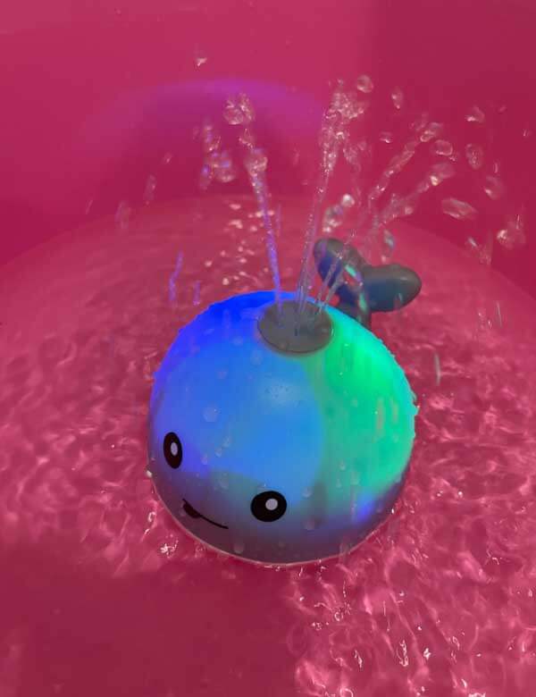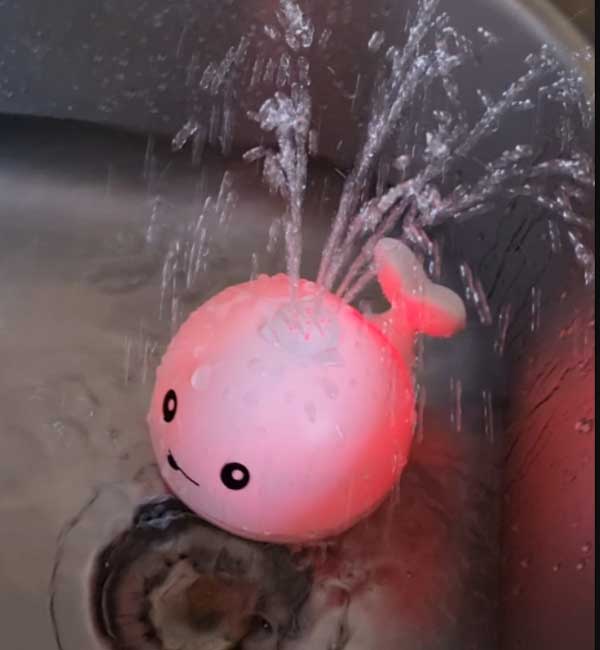 ¡Convierte el momento del baño en una aventura! Tu bebé SE EMOCIONARÁ al ver cómo el agua sale de la ballena y ALUMBRA EN DIFERENTES COLORES.