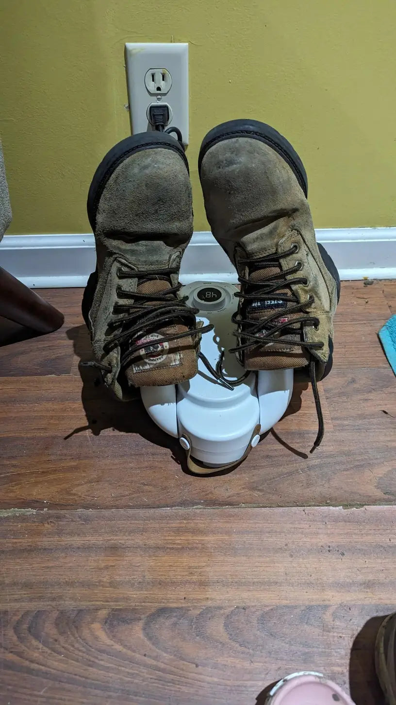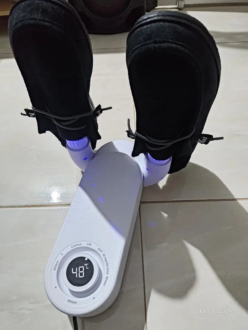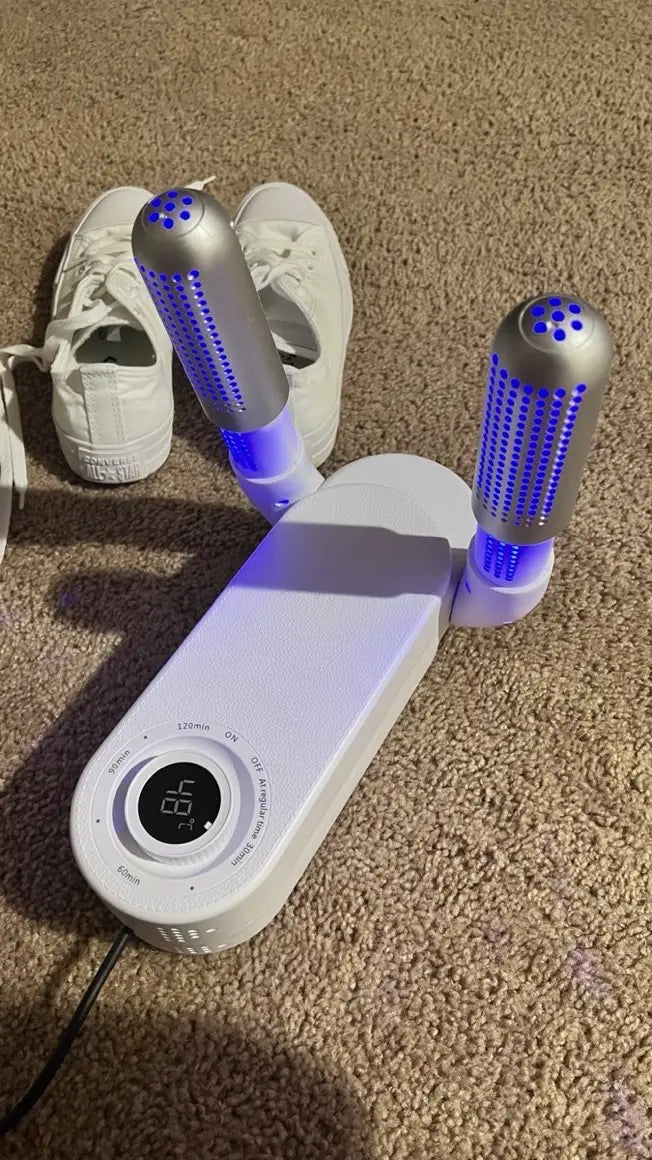 - Enciende el dispositivo y deja que se encargue del trabajo. En minutos, tus zapatos estarán secos y listos.